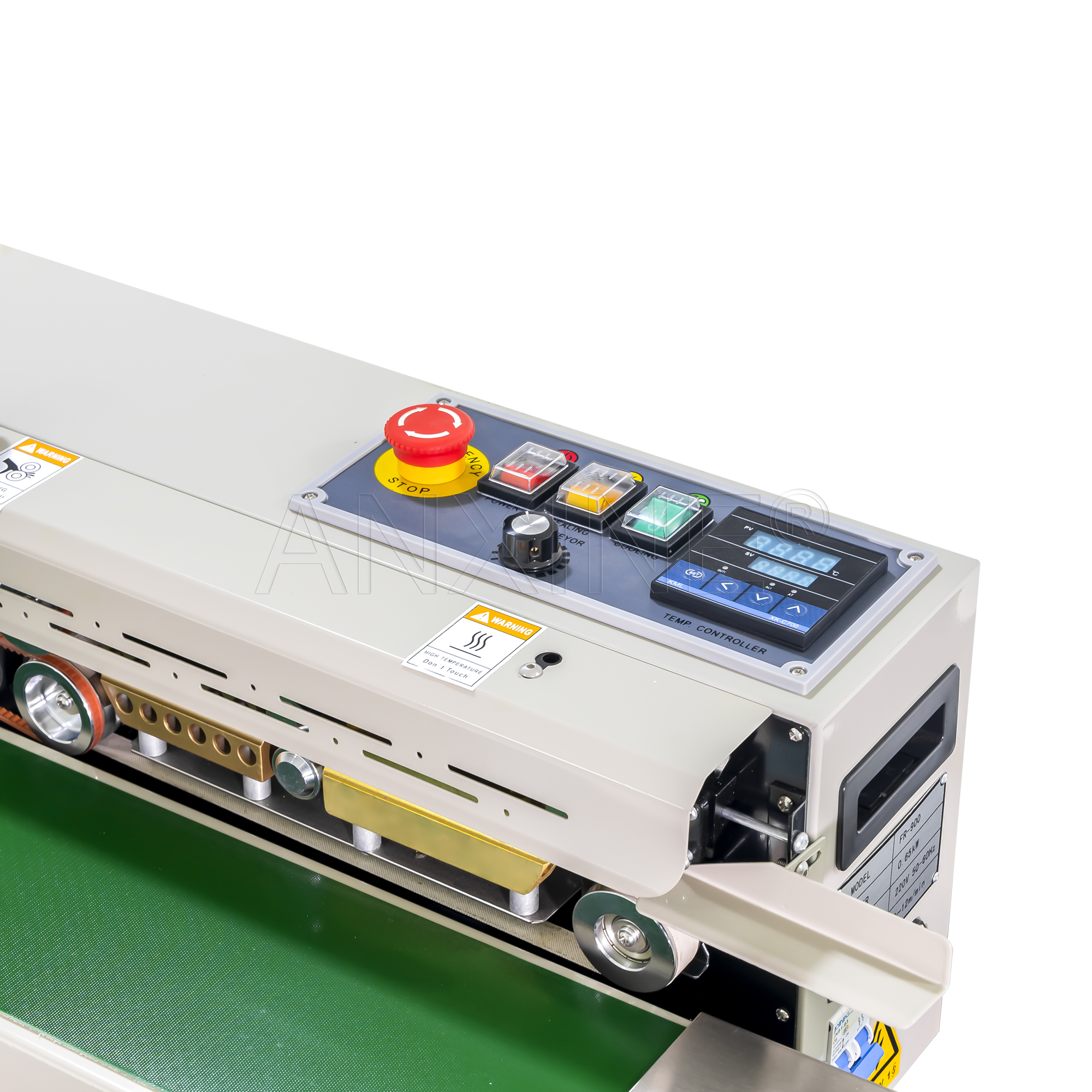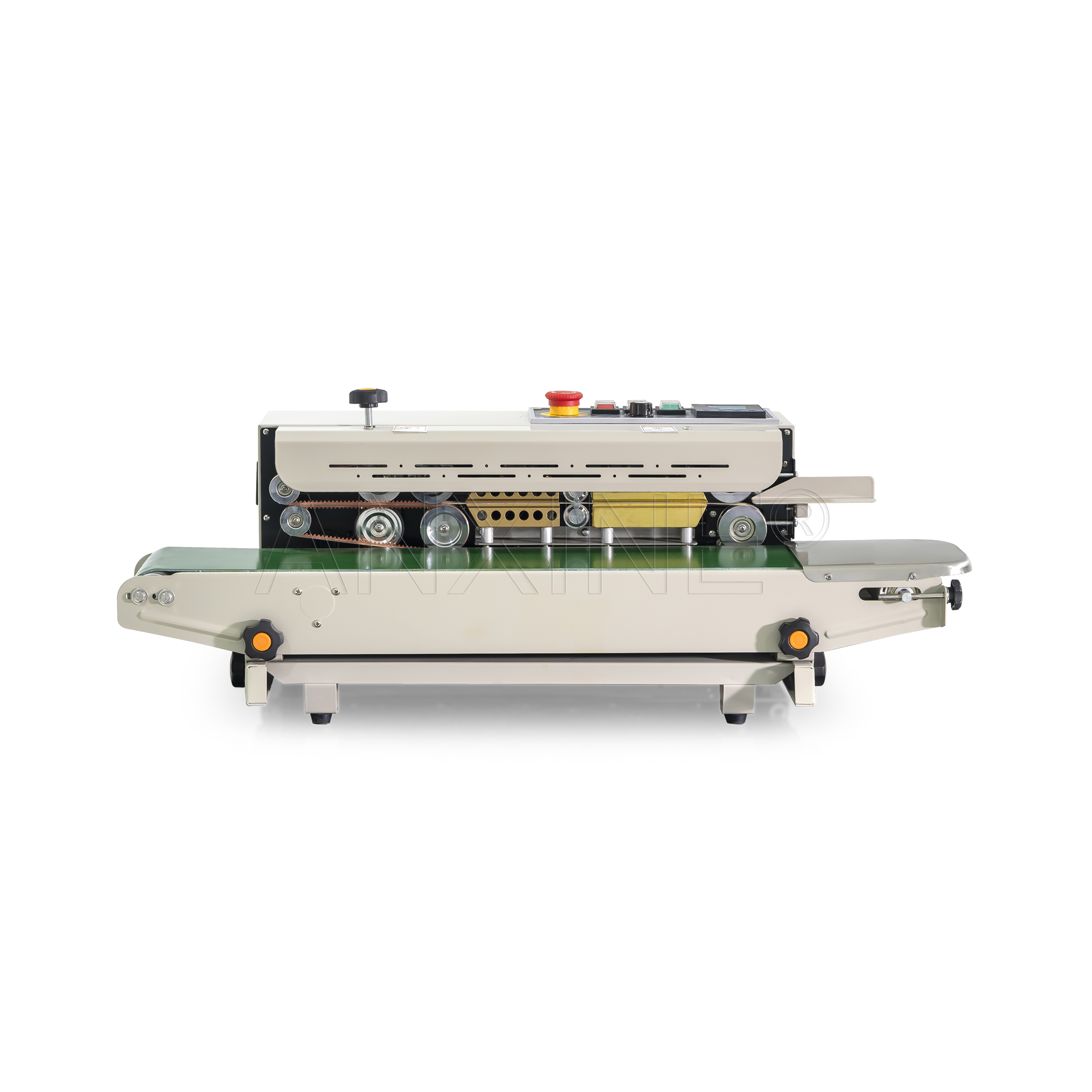The CFR-900 horizontal band sealer can handle different types of plastic film bags and works well with different packaging lines. It has electronic temperature control and automatic operation. This sealer also adds production date codes, which improves efficiency and reduces manual work.