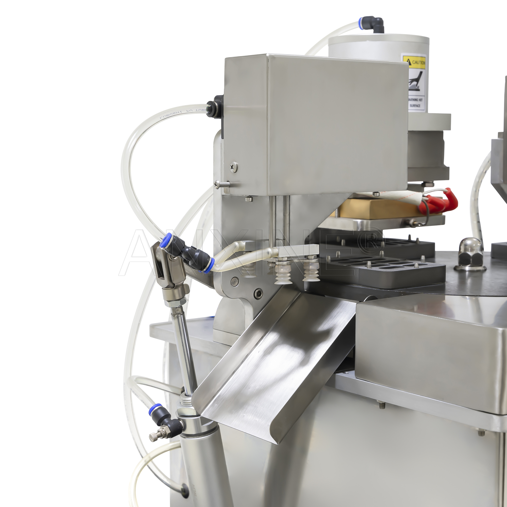 This machine uses air pressure to make sure that the pressure during the packaging process is always the same and reliable. Its rotary design makes operations more efficient. Operators load products into formed blisters (or load pre-formed blisters), and the machine handles the sealing, perforating, and cutting steps in an indexed, semi-automated flow. The ABM-720 is perfect for medium to high-volume production. It provides excellent precision and high-quality, tamper-evident blister packs for pharmaceuticals, nutraceuticals, and medical devices. It balances automation with operator control.