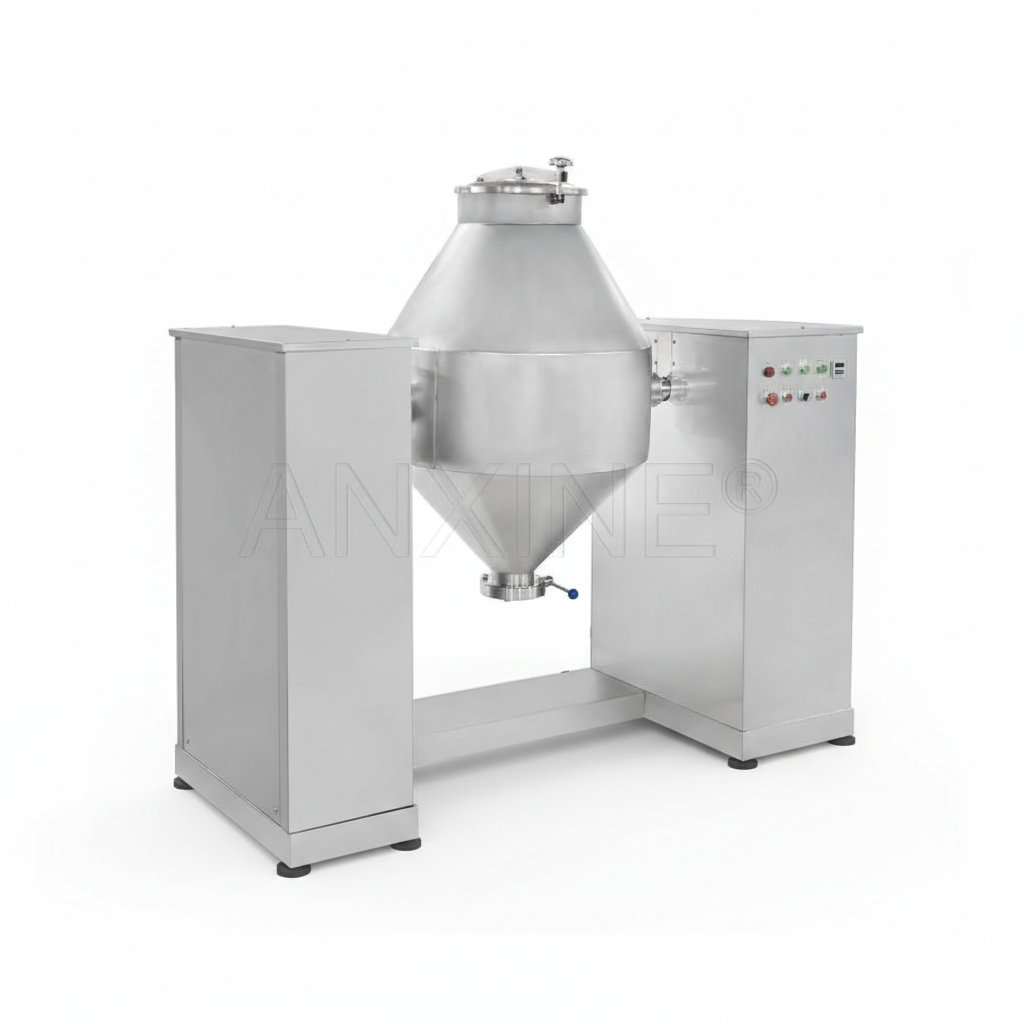 The double cone mixer efficiently blends dry powders and granules in various sizes and densities. It is perfect for pharmaceutical, chemical, food, and agricultural areas.
