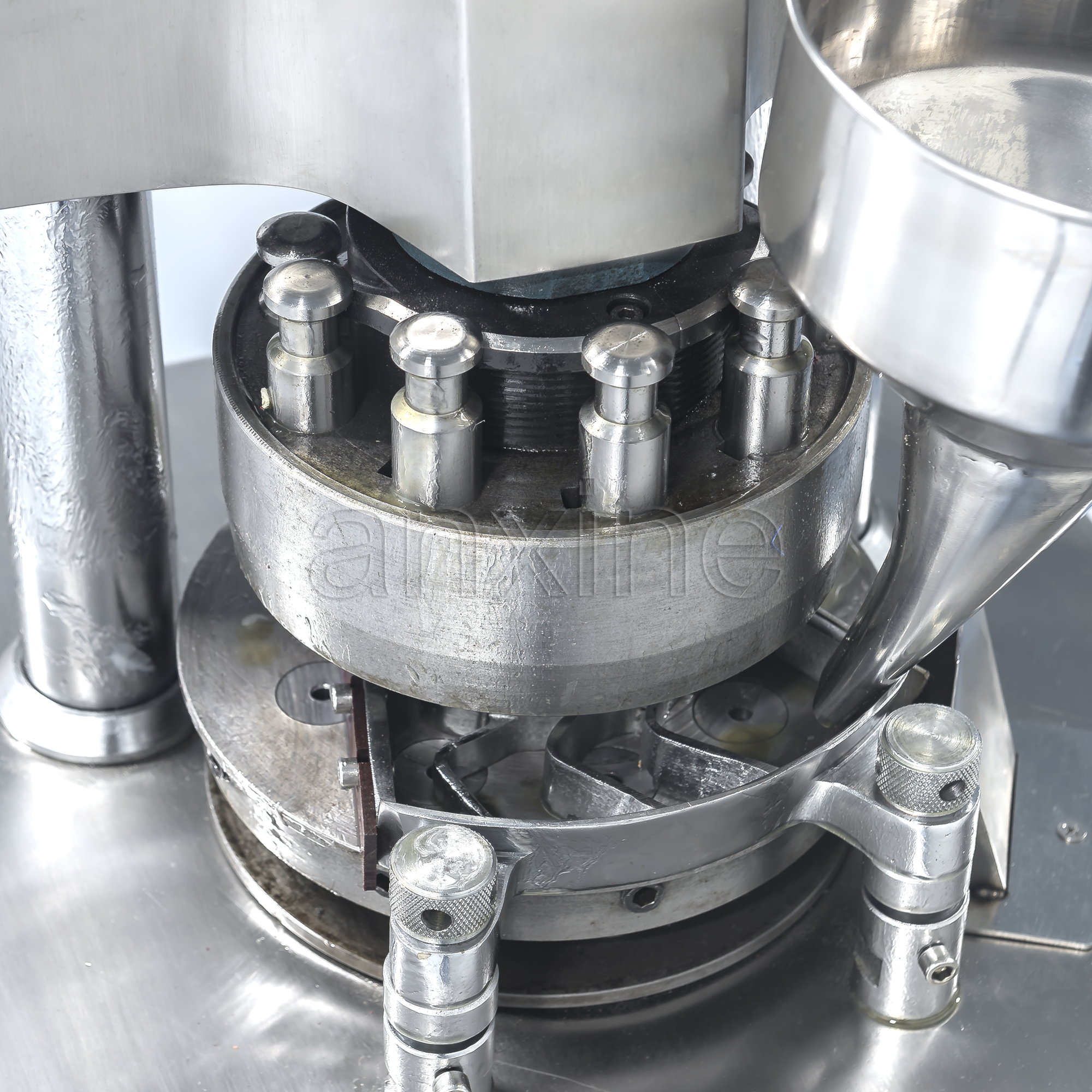 • Producción estable: Esta prensa rotativa puede producir hasta 21,600 tabletas por hora con calidad constante.