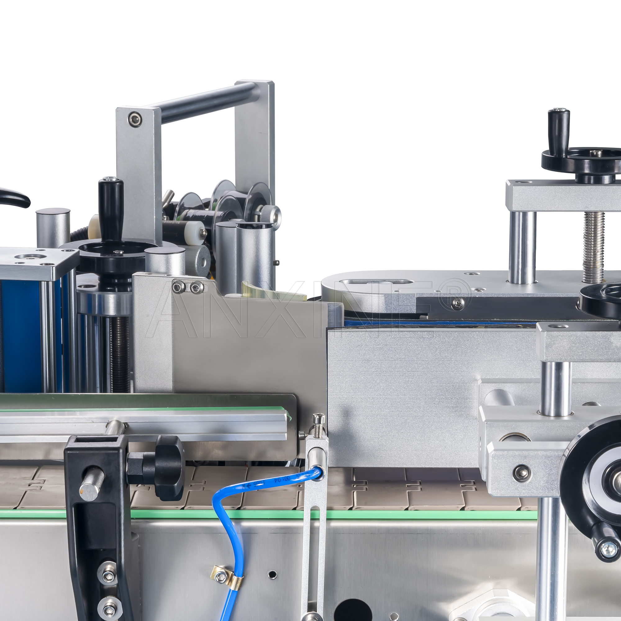 • Separación automática de botellas: Espacia las botellas de manera uniforme para un etiquetado fluido.