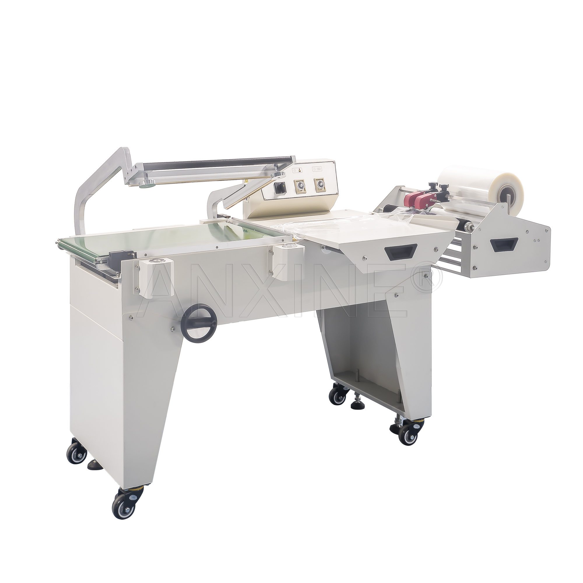 Este sellador de barra L es el complemento perfecto para su uso con un túnel de encogimiento, formando una combinación completa de sellador de barra L y cámara de encogimiento. Vale la pena señalar que la película retráctil utilizada en este sellador está doblada. Las cajas, libros, cosméticos o hardware deben colocarse entre dos capas de la película retráctil. Las barras de sellado calentadas luego cortan y sellan los artículos envueltos. Este sellador de envoltura retráctil compacto pero duradero maneja una variedad de tamaños de película y formatos de embalaje, lo que lo convierte en una excelente adición a cualquier sistema de envolvimiento de volumen medio.