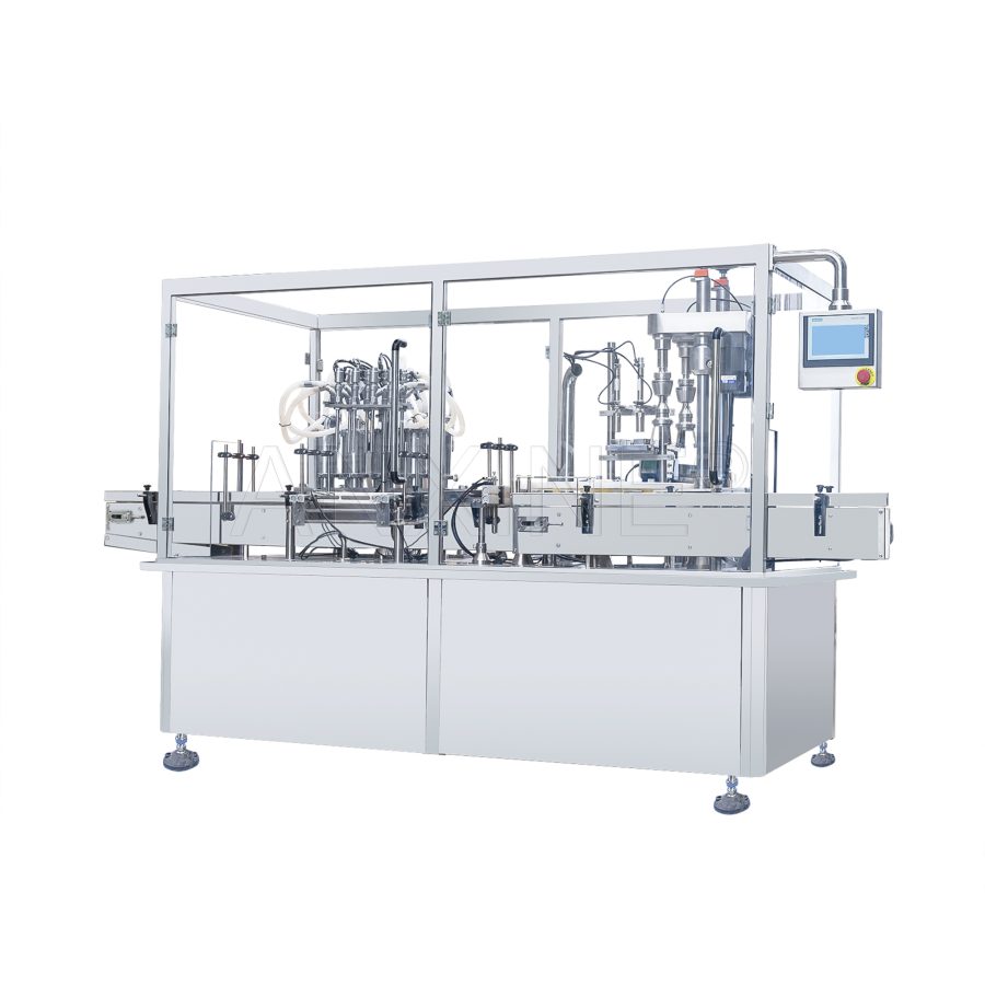 This type requires some manual work. It includes placing bottles under the nozzles and pressing a button or pedal to start filling. A semi-automatic liquid filling system is slower than a fully automatic system. But it offers much cheaper, suitable for small to medium production.