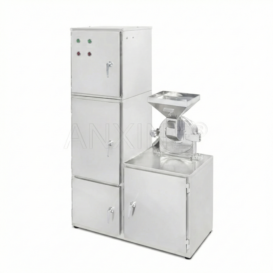 The SF-40B Continuous Mill Grinder is a high-speed, ultra-fine pulverizer designed for the pharmaceutical, food, and chemical industries. It is built for smooth operation, low noise, and clean processing. This machine includes a built-in dust collector and a material collection box. They reduce dust and keep the working area clean. The grinder uses a high-speed motor to spin the main shaft, crushing materials through friction and impact between discs. The final powder passes through a screen, collected in a bag. At the same time, dust is pulled into the box by a fan for easy recovery.
