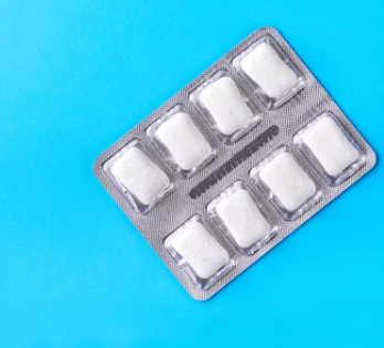 Some small food items, such as gum and mints, are also packed in blister packs. The clear cover shows the product directly, and the sealed pockets help control freshness.