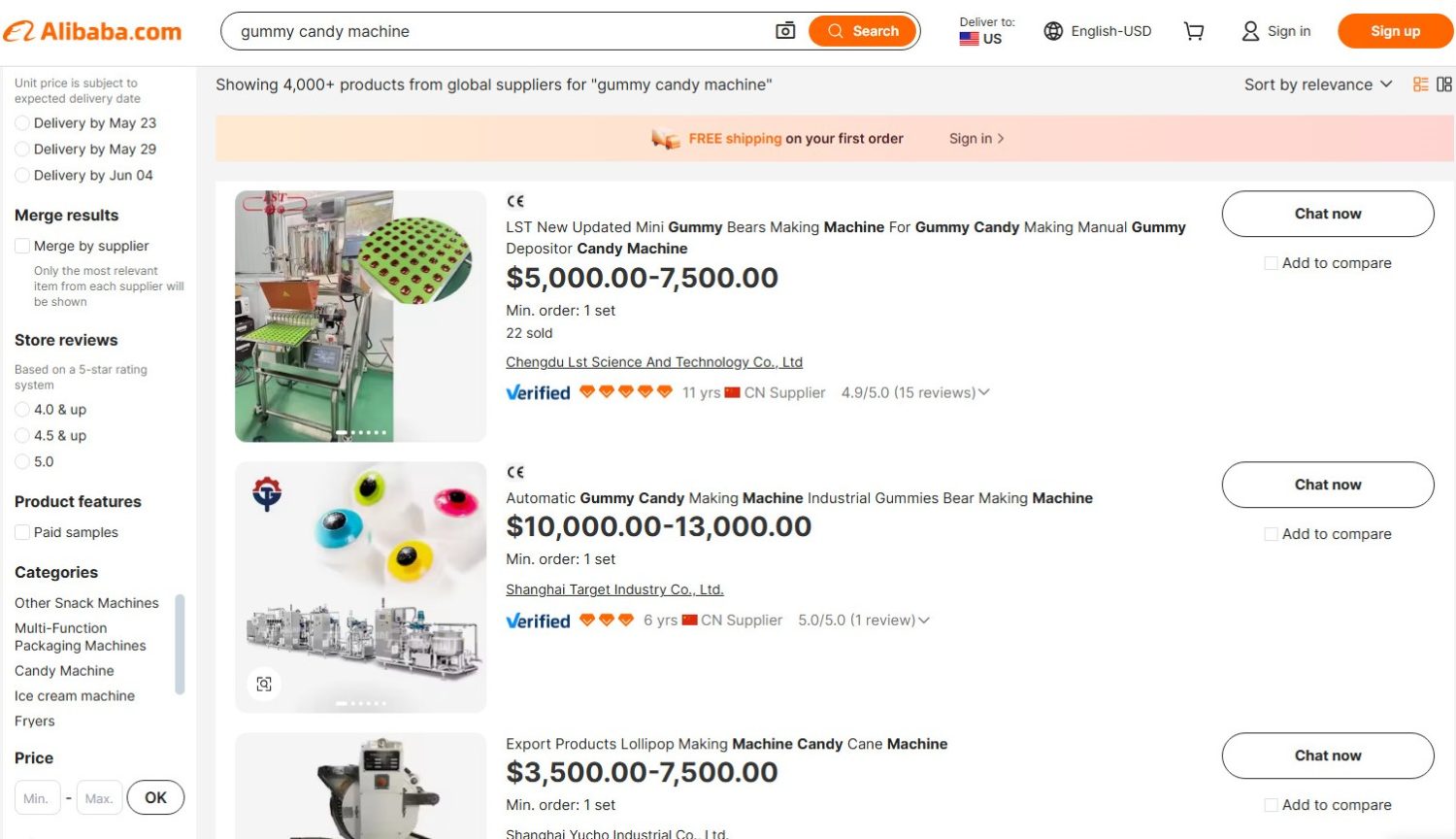 - Alibaba.com – Over 4,000 entries for “gummy candy machine.”