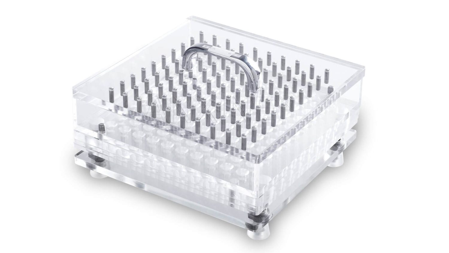 - Give the plates a light shake so the bodies settle into the holes. Then take out the excess and set aside the alignment plate.
