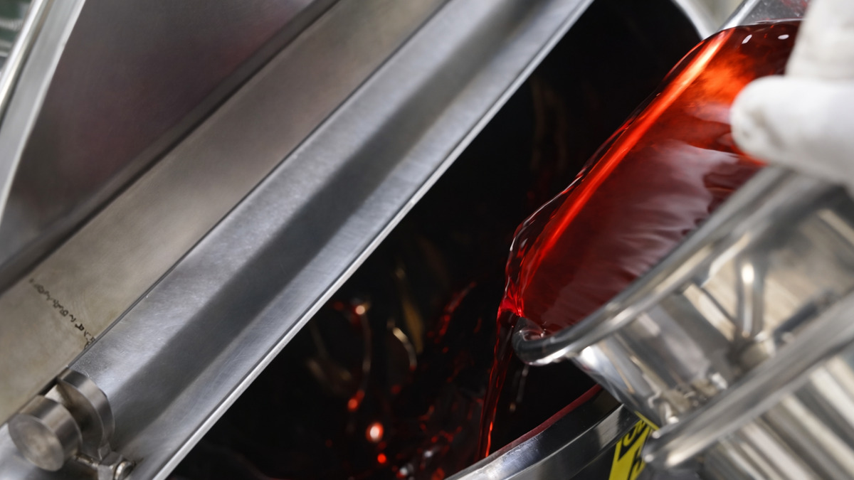 Step 1: Manually pour gummy base ingredients into the large bowl of the jacketed cooker.