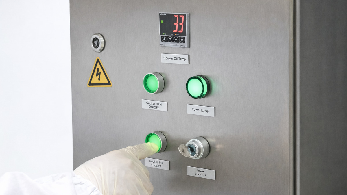 Step 2: Power on the cooker to activate the control panel. Then set the temperature. Press the push buttons to start heating and stirring.