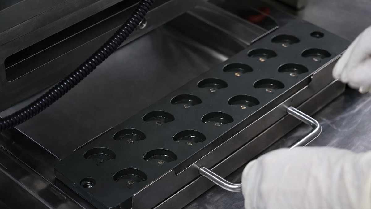 - Semi-auto depositor: Doses slurry into gummy molds