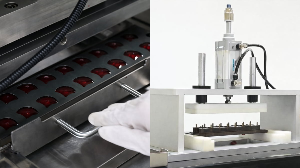 - Pneumatic demolder: Releases the finished gummies from molds