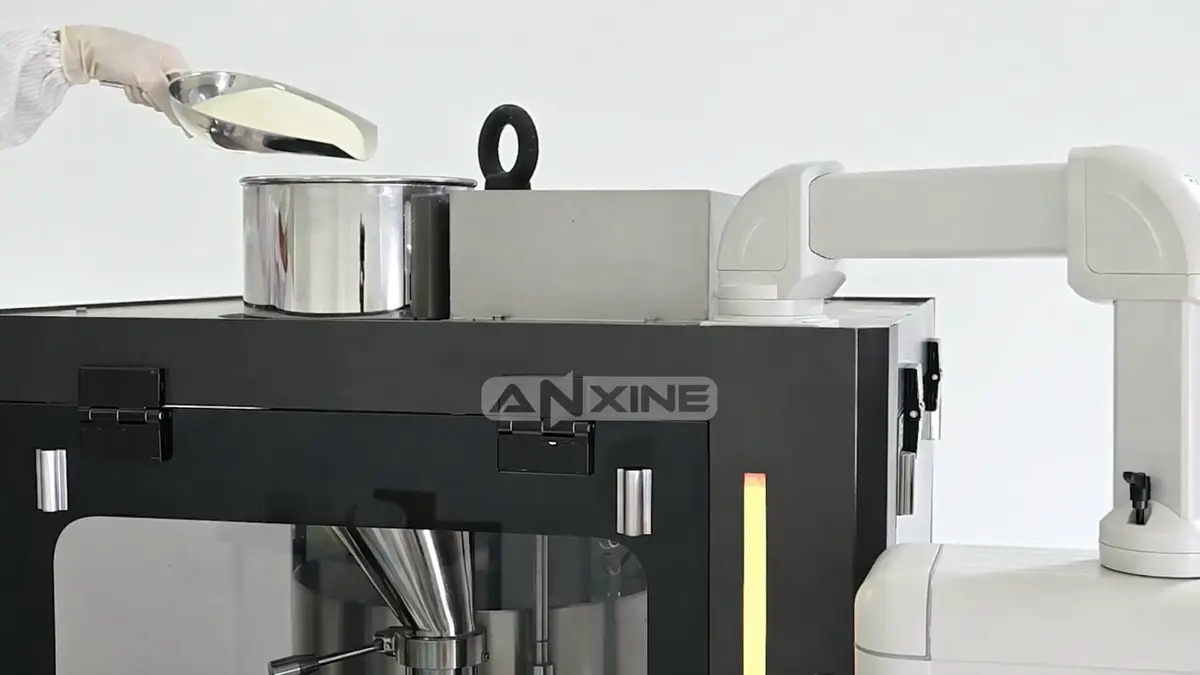 Step 2: Open the top hopper and pour in powder or granules using a clean scoop.