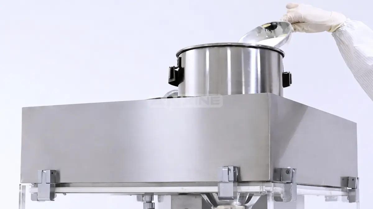 Step 1: Open the hopper lid and load the powder. Ensure the powder level is within the operational range.