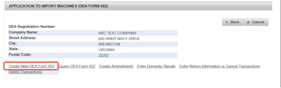 Whatever you want to import, export, or transact a regulated machine in the US, it is a must to submit the Form 452. If you don’t have an account, create an account through DEA’s secure network system. The registration requires information such as company, address, city, state, postal code, etc. Then log in and complete the form according to the requirements.