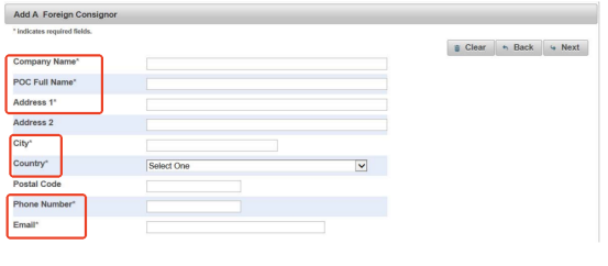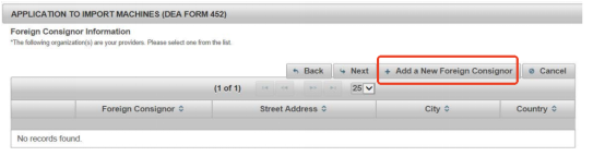 Next, add a new foreign consignor as required. DEA needs to know who you purchased the machine from and who is shipping it into the US. For example, you directly buy a capsule filler from Anxine. So Anxine is your supplier and its information needs to be submitted.