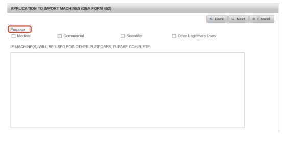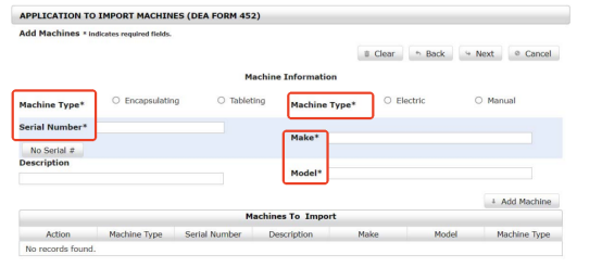 If you have finished the step above, click next. It is time to enter the machine details to the DEA Form 452. The information of your imported equipment must have