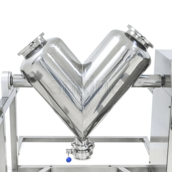 The V blender has a V-shaped container that rotates around its axis. The rotation causes powders to tumble gently, and particles can move from one side to the other repeatedly. This gentle tumbling avoids high shear, so it is ideal for fragile or brittle powders. It also works well for free-flowing powders and granules in pharmaceuticals, chemicals, and food. The blender makes uniform micro-level distribution without damaging sensitive ingredients.
