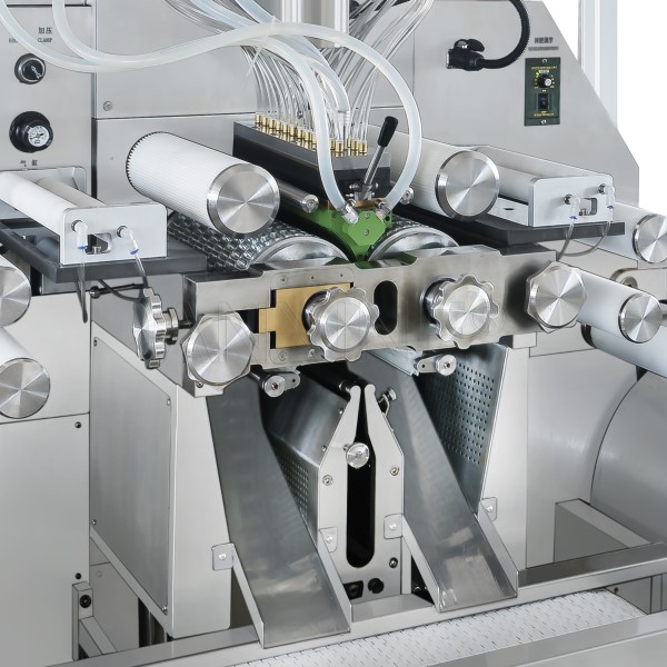 This system includes die rollers and a wedge. They work together to form and seal the soft capsules. During the manufacturing process, two gelatin ribbons meet at the die rollers. And the filling material is injected between them. The rollers shape the soft capsule and seal it at the same time. This part plays a key role in capsule size, shape, and sealing quality.