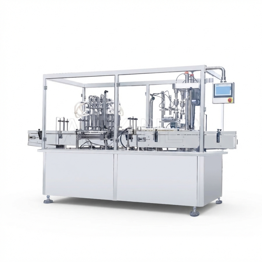 Эта система использует 8 головок для наполнения и вибрирующий диск для быстрой и плавной подачи и закрытия крышек. Также легко соединяется с другими машинами для более эффективной интеграции всей производственной линии. Насос для наполнения приводится в действие поршнем и изготавливается с прочными стальными частями для обеспечения стабильной работы. Для дополнительной безопасности и чистоты он защищен прозрачной крышкой и стальным каркасом из нержавеющей стали, что делает его разумным выбором для чистого и надежного производства.