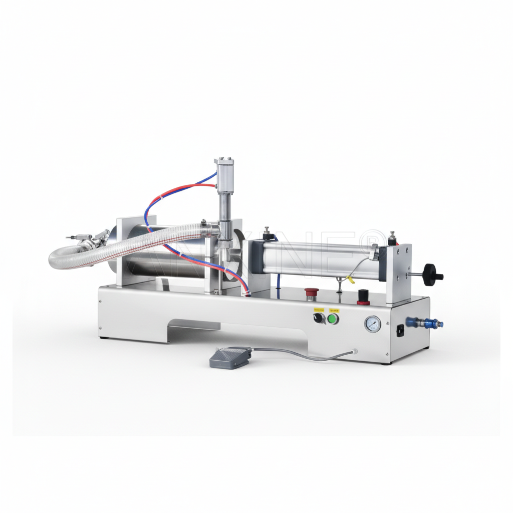 The C1WY single-head liquid filling machine is a semi-automatic machine. It fills different liquids into bottles, such as cream, syrup, drink, etc. This machine uses a piston system to control the flow of liquid, ensuring accurate measurements. It works with different bottle sizes and fills 10 to 30 bottles per minute. It is suitable for various bottle types, such as standard bottles and jars. This model is easy to clean and operate, perfect for small businesses or factories.