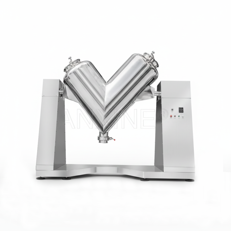 V-blending machines combine mechanical stability with user-centered control. The steady rotation speed ensures that even heavier powders are handled smoothly. Operators can operate them easily, even for newbies.